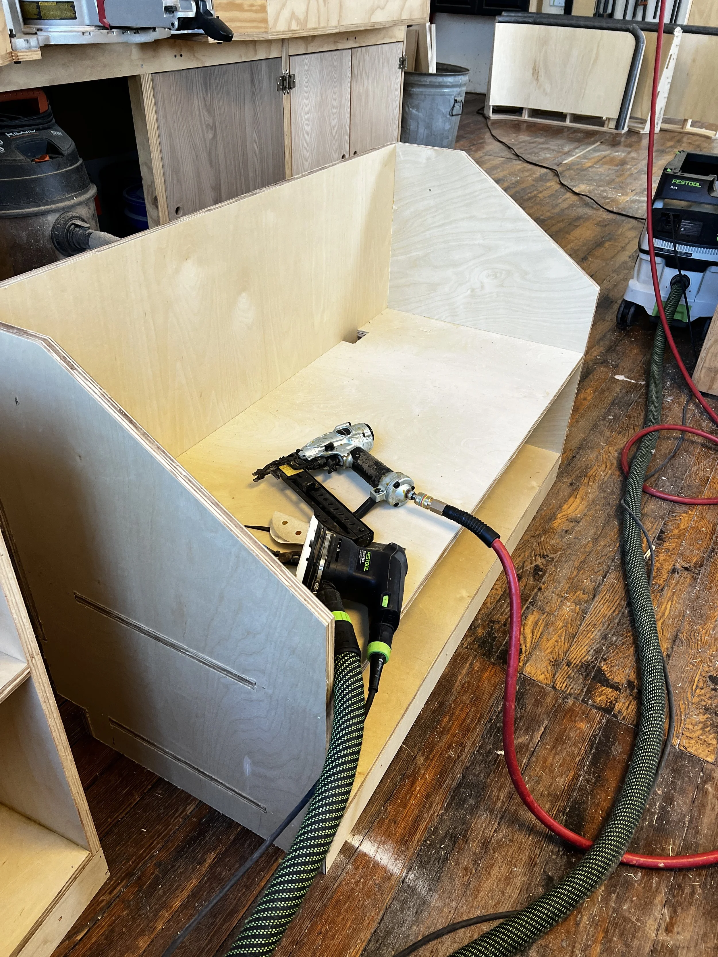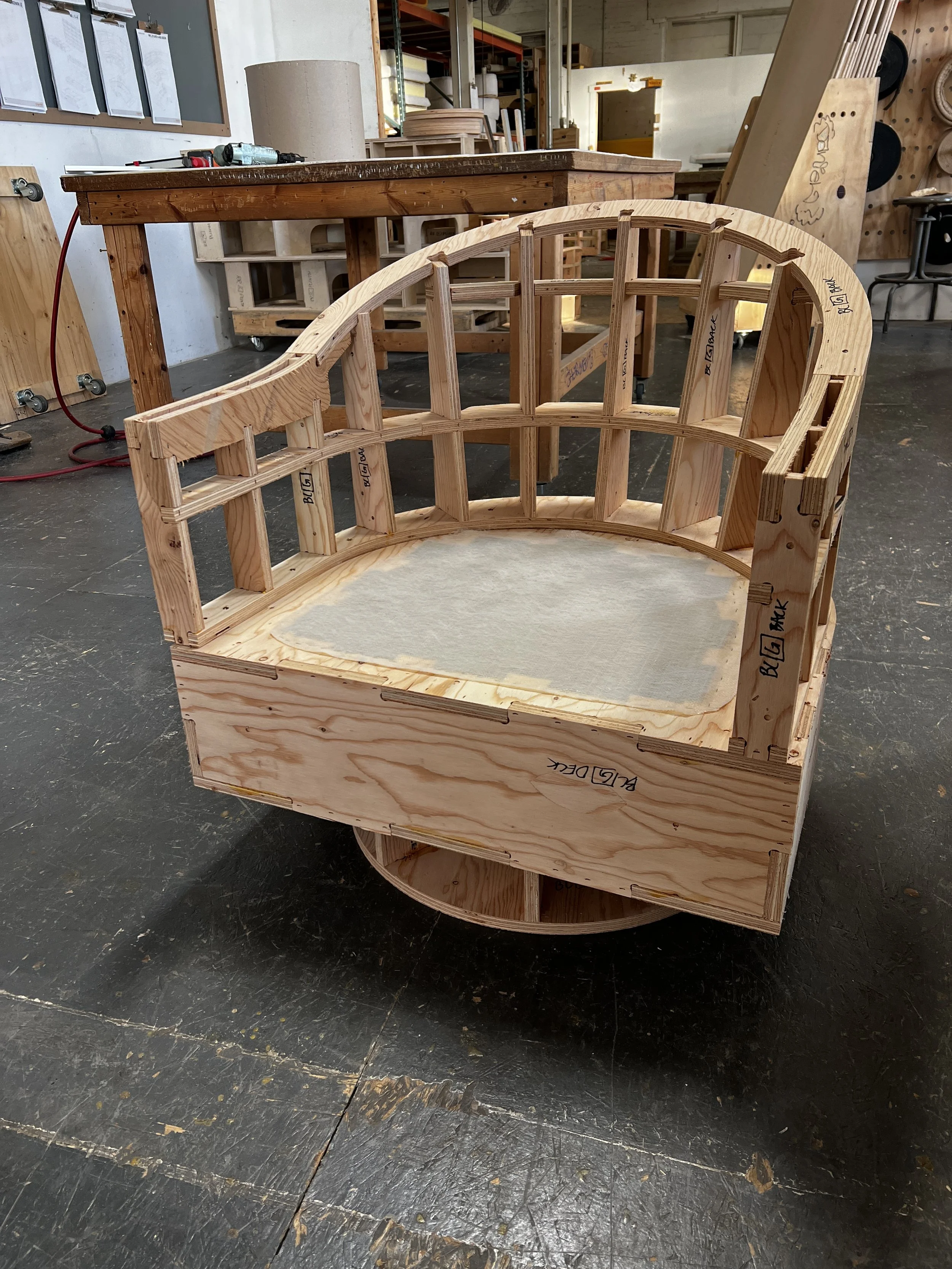 During my time at Orange Chair I was involved in their design, build, and installation processes. Using Rhinoceros and Grasshopper softwares, I engineered CAD models from drawings and programmed for CNC machining. I learned about the complete assembly process from ideas to final products and was hands on in the wood shop operating both basic machinery and CNC routers, assisting with structure assembly, cladding, and dry fitting for final installation.